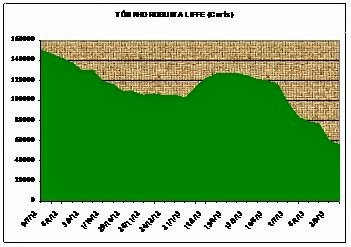 Biểu đồ 2: Tồn kho robusta certifieds Liffe NYSE (tác giả tổng hợp)